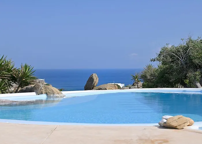 Situated 4.4 km from the Little Venice, the 0-bedroom Villa Platis Gialos: Charming Retreat with Private Pool Paradise Beach provides access to numerous tourist attractions in the area.